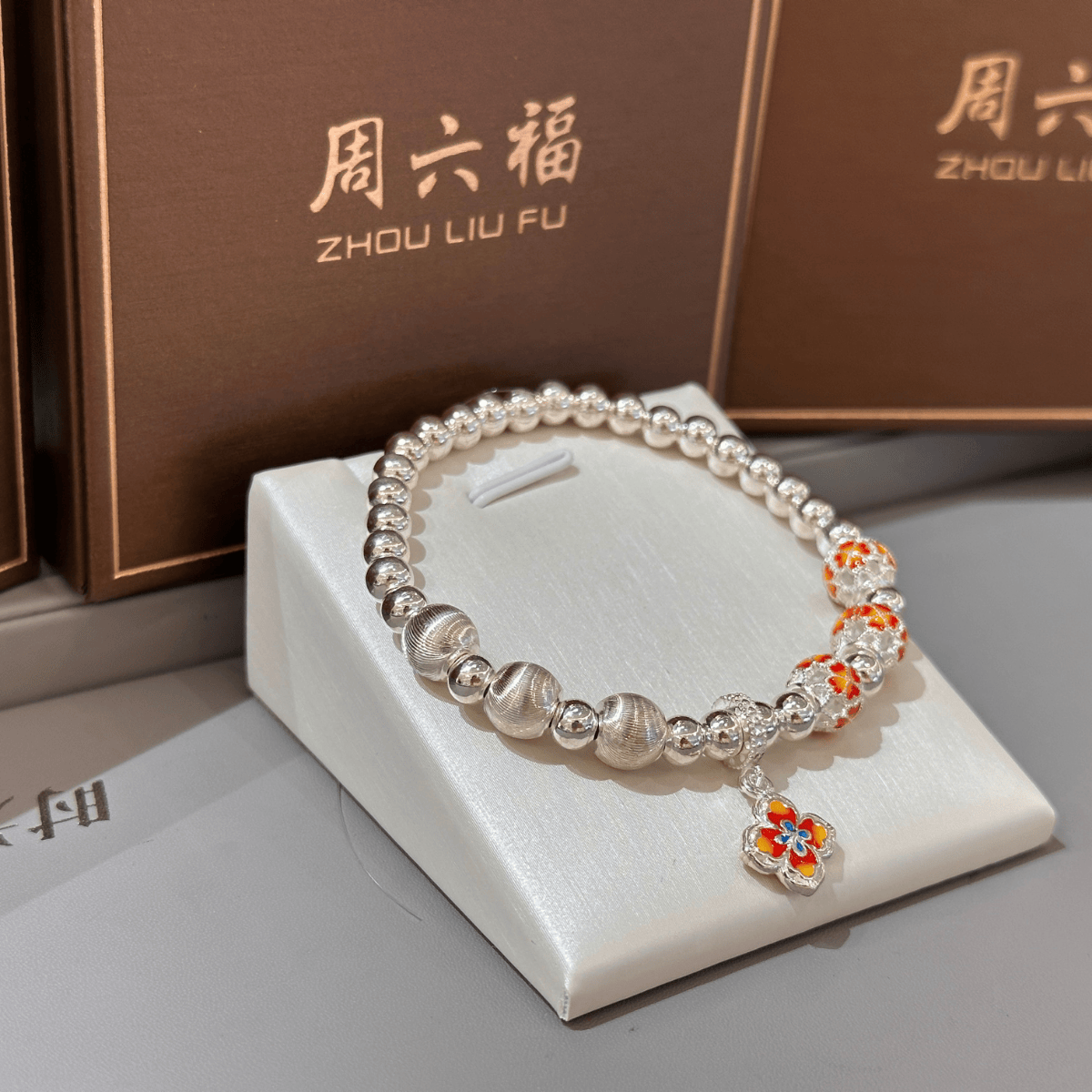 Vòng Tay Bạc Phong Cách Tân Trung Hoa Phối Charm Hoa - Cỏ Bốn Lá - Hạt Mắt Mèo